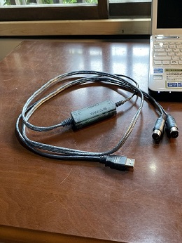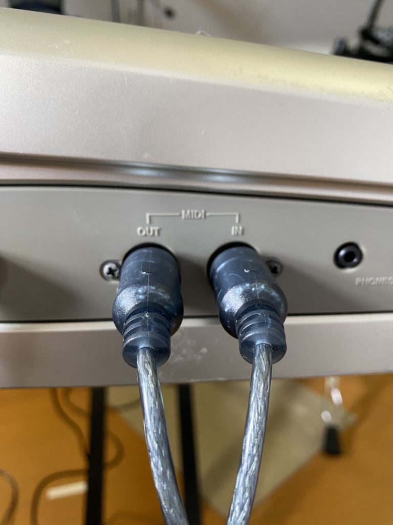 電子ピアノだけはMIDIケーブルを使ってピアノの方にOUT・IN端子を繋ぎ、片方はUSBでPCに繋ぎます。そしてPCソフトCakewalk by BandLabでピアノ音を取り込んでいます。以下の写真のように繋いでいます。